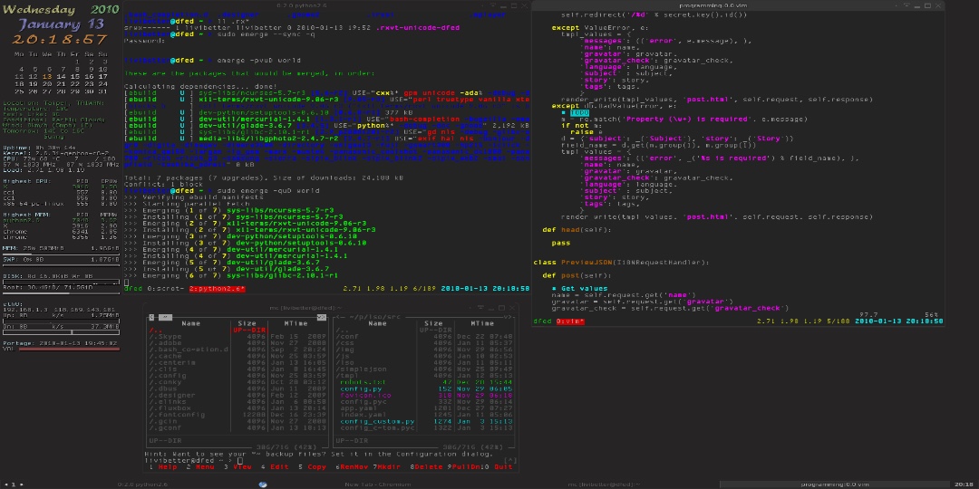 在这些快捷方式和一个打开的终端之间,在我工作日的大部分时间内很少使用鼠标,因此从一个控制器切换到另一个控制器不会浪费时间。并且因为 Fluxbox 很好地避开了控制器之间切换的方法,因此在其中操作没有一丝干扰。