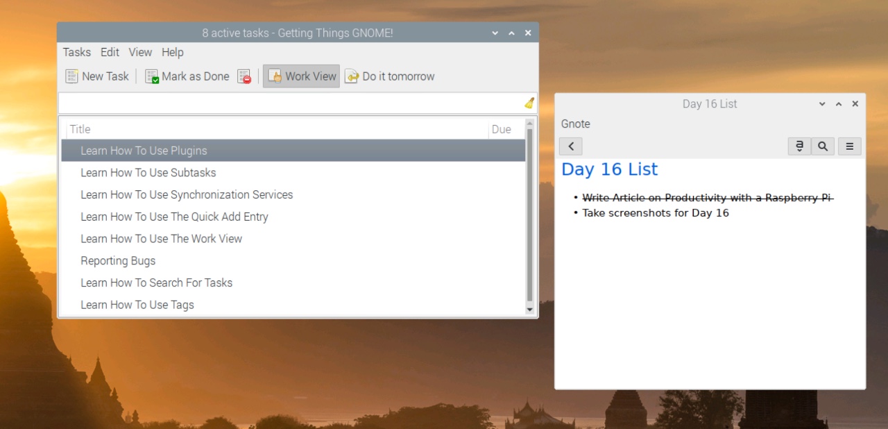 GTG and GNote open on Raspberry Pi