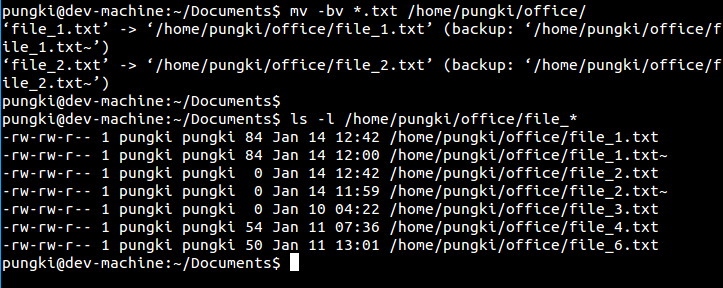 $ mv file_2.txt file_3.txt file_4.txt /home/pungki/office