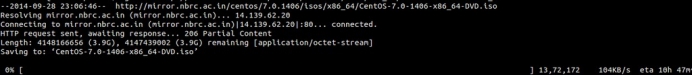 # wget http://mirror.nbrc.ac.in/centos/7.0.1406/isos/x86_64/CentOS-7.0-1406-x86_64-DVD.iso