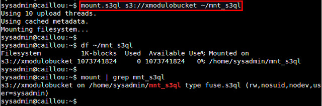 $ mount.s3ql s3://[bucket-name] ~/mnt_s3ql