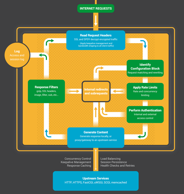 深入 NGINX 信息图提供一个 NGINX 功能实现的高层面概览,但在这简单的解释的背后是超过十年的创新和优化,使得 NGINX 在广泛的硬件上提供尽可能最好的性能同时保持了现代 Web 应用程序所需要的安全性和可靠性。