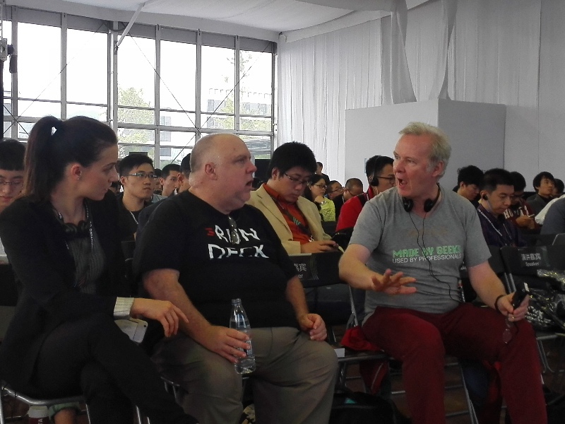 从右向左分别是:Michael Widenius、John Willis 及其随员。在讲演前后,一大批与会者纷纷与两位大神级程序员合影留念(没有人与美女随员合影,不知道她内心的感受是……)。