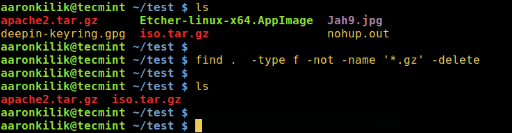 find 命令 —— 删除 .gz 之外的所有文件