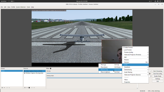 添加的来源是可以调整大小的,也可以沿着录制帧的平面移动,因此你可以添加多个来源,并根据需要进行排列,最后通过右键单击执行基本的编辑任务。